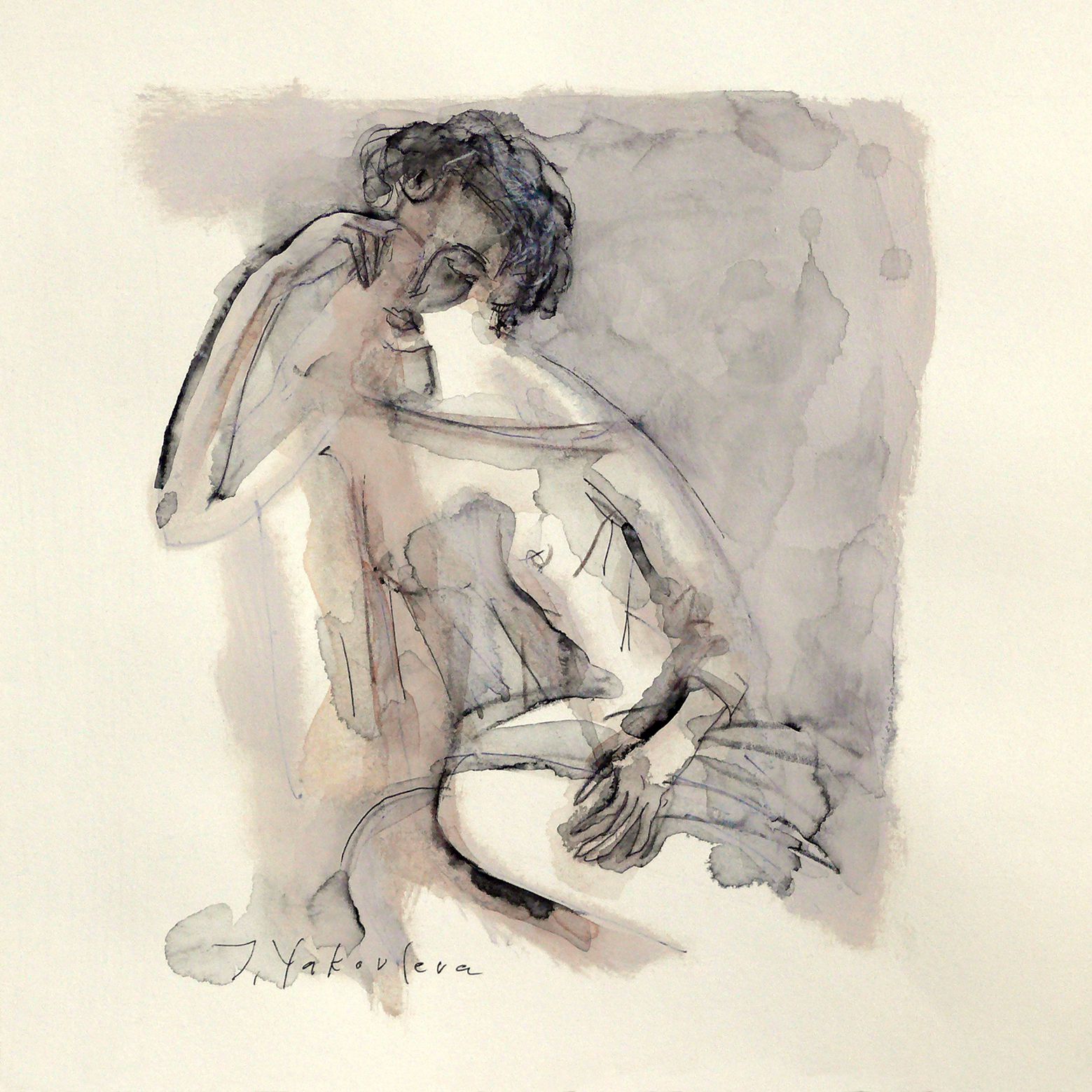 24.5Б1. 17РЗадумчивость акв 20х20 б тушь акварель